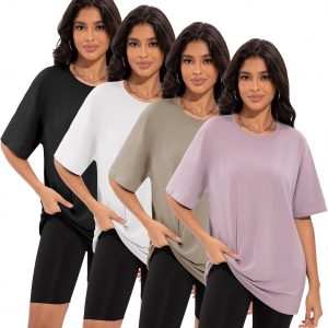 4 Pack Oversized Tshirts for Women, Loose Fit Crew Neck Summer Baggy Tops Workout Tees Plus Size T Shirts